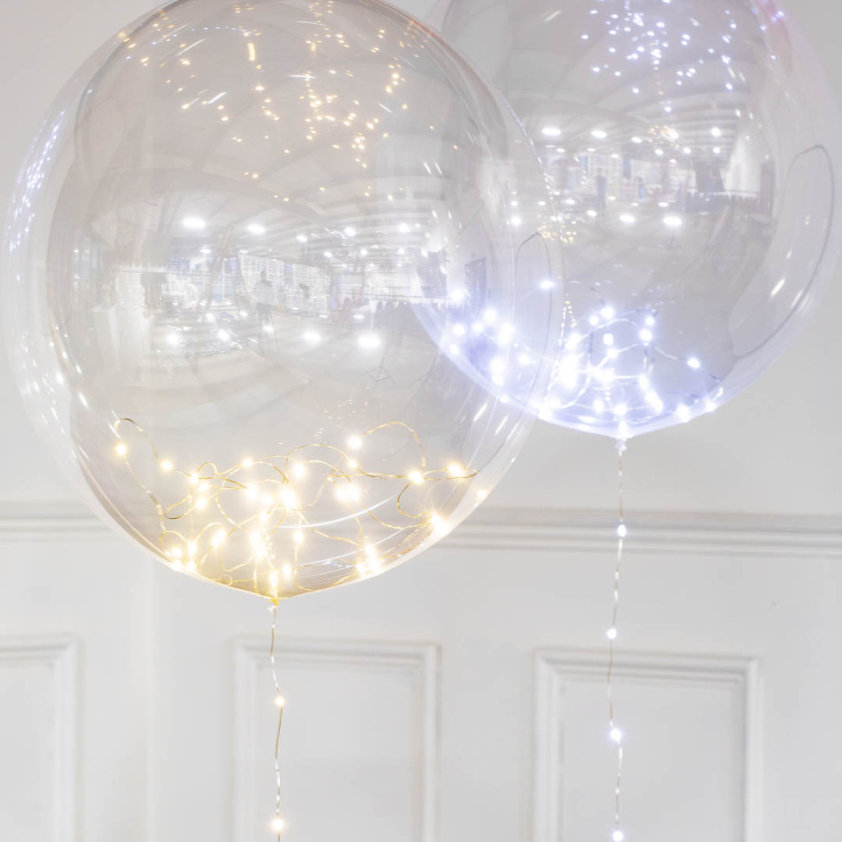 Deze glas heldere doorzichtige ballonnen zijn gevuld met fonkelende LED-lampjes die naar buiten lopen en de staart vormen, waardoor elke gelegenheid sprankeling en magie krijgt!